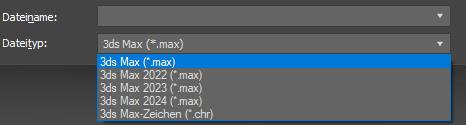 Wählen Sie aus der Dropdown-Liste Dateityp eine frühere Version von 3ds Max aus.