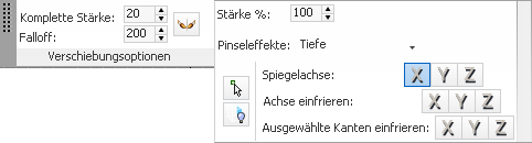 Halten Sie die Strg-Taste gedrückt, und ziehen Sie mit der Maus, um "Falloff" interaktiv einzustellen.