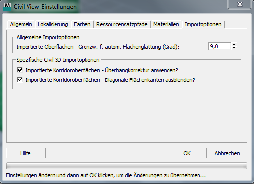Importoptionen werden von allen Civil View Importgruppen verwendet.
