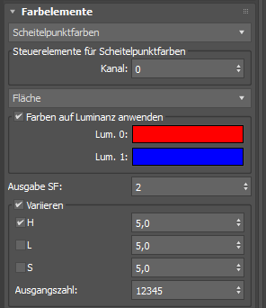 Beispiel mit Scheitelpunktfarben als ausgewählter Eingabe. Die Parameter variieren je nach Eingabe.