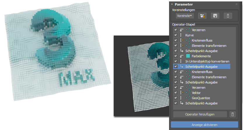 Beispiel für die Verwendung von mehreren Operatoren verschiedenen Typs in Folge zum Erstellen eines komplexen animierten Effekts