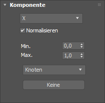 Der Begriff "Komponente"' bezieht sich auf die X-, Y- oder Z-Komponente eines Vektors (in diesem Fall einer Scheitelpunktposition). Mit diesem Operator ist die Erstellung eines Verlaufs für Z-Werte in einem Netz viel einfacher als durch Normalisierung der Z-Position einer Scheitelpunkteingabe. Der Operator Komponentenraum ähnelt dem Operator XYZ-Raum, stellt jedoch nur Gleitkommawert-Daten bereit.