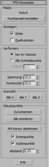 Enthält Steuerelemente, mit denen Sie angeben, welche Scheitelpunkte von der FFD beeinflusst werden.
