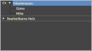 Der Modifikator "Volumenauswahl" hat neben einem Gizmo auch einen Mittelpunkt. Dadurch können Sie den Mittelpunkt für nicht animierte Transformationen ändern. Wenn Sie jedoch eine Rotation um den versetzten Mittelpunkt animieren, erzielen Sie die Animation der Drehung und des Versatzes.
