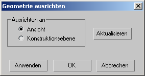 In diesem über "Poly bearbeiten" zu öffnenden Dialogfeld können Sie die Ausrichtungsmethode nach Verwenden der Funktion "Ansicht ausrichten" oder "Raster ausrichten" ändern. Dieses Dialogfeld ist nur im Modus "Animation" nach Verwendung der Befehle "Ansicht ausrichten" oder "Raster ausrichten" verfügbar.