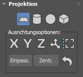 Die Optionen im Rollout Projektion (obere Zeile) von links nach rechts: