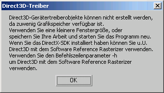Direct3D meldet eine Speicherwarnung.