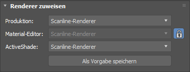 Material-Editor Damit wird der Renderer gewählt, mit dem Musterfelder im Material-Editor gerendert werden.