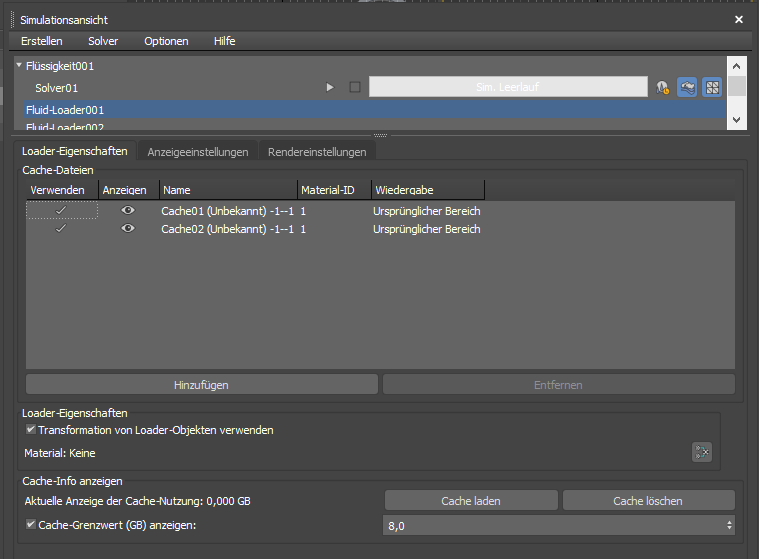 Verwenden Sie die Gruppe Loader-Eigenschaften, um die Einstellungen vorhandener Fluid-Loader-Objekte zu ändern.