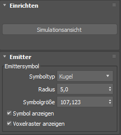 - Bei Auswahl von Kugel als Symboltyp wird hier der Radius des Emitters festgelegt.
