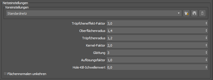 - Legt einen Skalierungsfaktor zum Anpassen der Partikelauflösung vor dem Erstellen des Netzes fest. Höhere Werte erstellen zwar hochfrequente Details, führen jedoch zu längeren Berechnungszeiten.