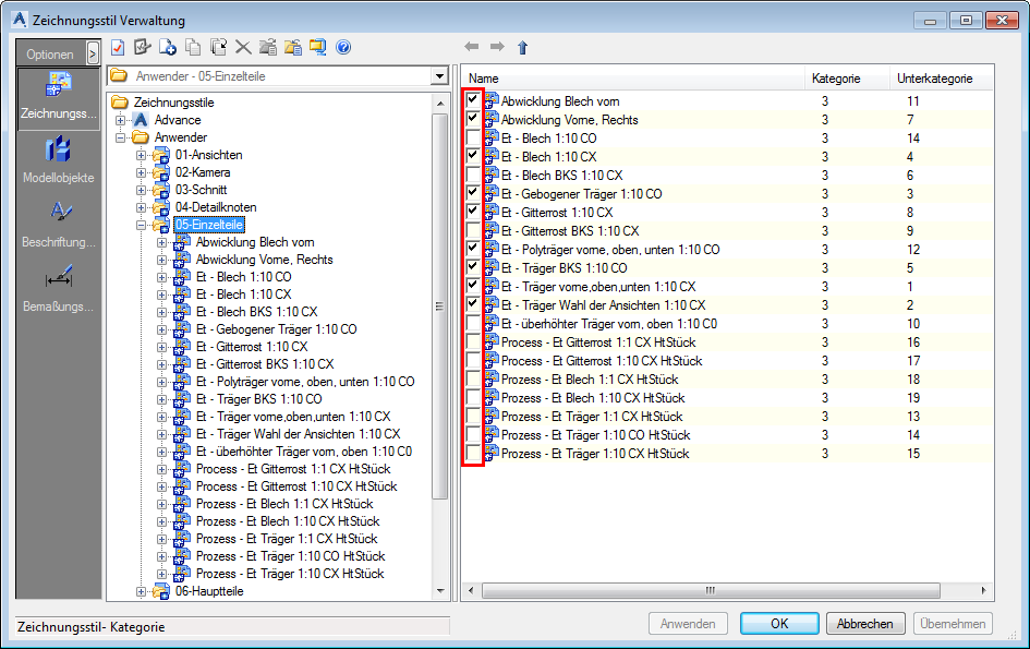 (Zeichnungsstilverwaltung).