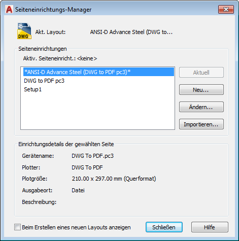 Zum Festlegen der korrekten Druckeinstellungen für Advance Steel müssen Sie das entsprechende Papierformat definieren.