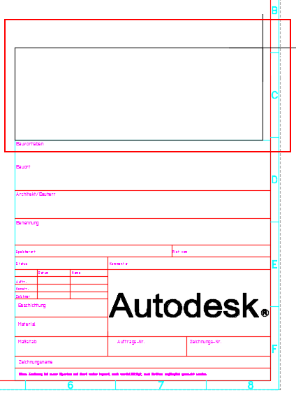 - Wählen Sie auf dem Prototyp für die Stückliste eine Position mit einem Rechteck aus. Die Ecken des Rechtecks (nicht das gesamte Rechteck) muss basierend auf der gewünschten Position der Liste ausgewählt werden: