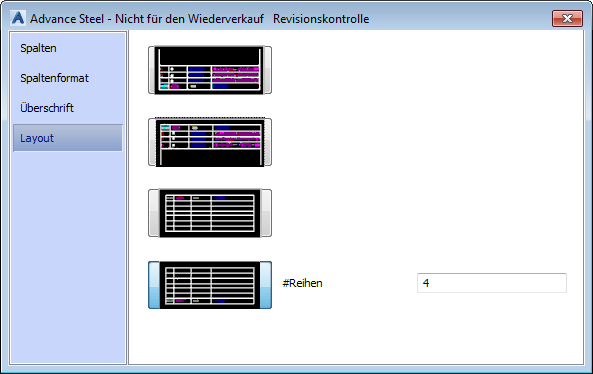 Hier können Sie die Anzahl der Zeilen und die Position der Überschriften in der Revisionstabelle definieren.