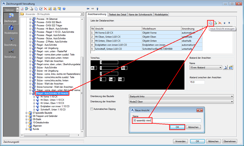 - Erstellen Sie eine neue Ansicht und nennen Sie diese 3D-Baugruppenansicht.
