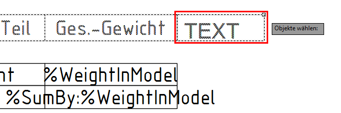 - Um ein Textfeld in eine Vorlage einzufügen, verwenden Sie den Befehl Erzeugt ein Listenfeld auf der Registerkarte Ausgabe, Gruppe Stückliste in Zeichnung: