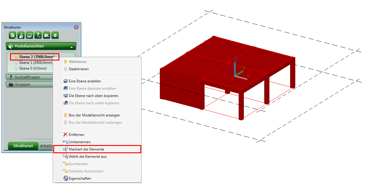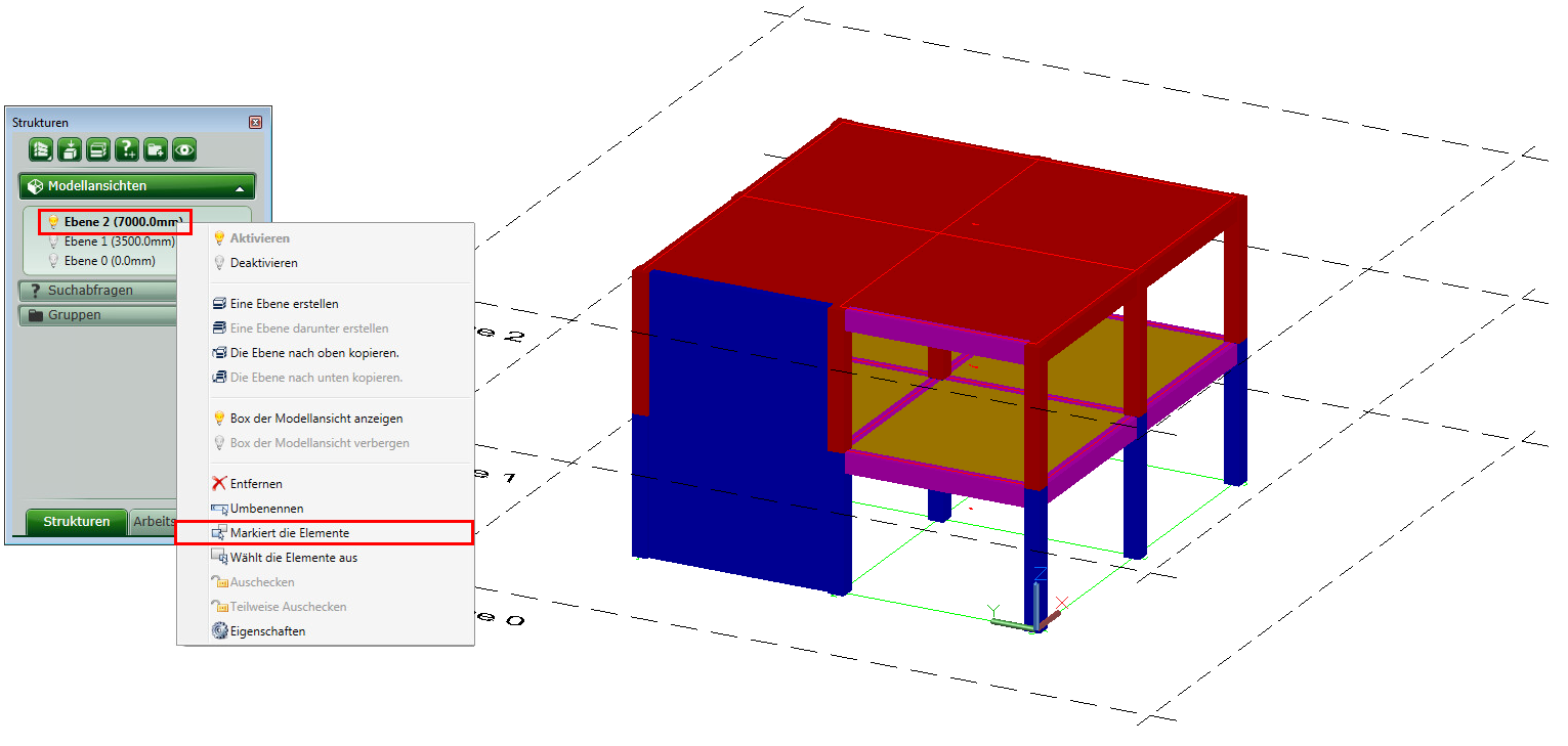 Die Wand und der Träger sind nicht mit Ebene 2 verknüpft. Um Elemente ordnungsgemäß mit der gewünschten Ebene zu verknüpfen, müssen Sie zwei Schritte durchführen: