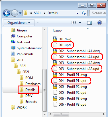 Vor einer Registrierung müssen Sie die .dwg- und .upd-Dateien in den Ordner Details kopieren, in dem die Details registriert werden.