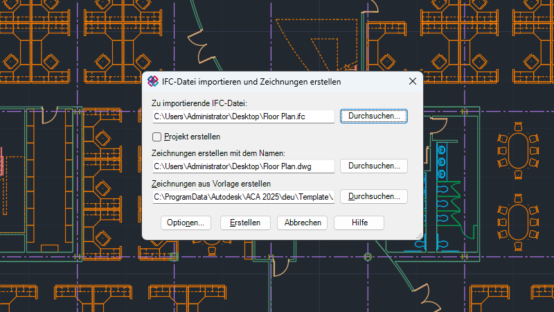 IFC-Import oder -Export: Der IFC-Importvorgang wird jetzt nach dem Erstellen der Zeichnungsdateien erfolgreich abgeschlossen.