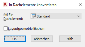 . Die Dachelementstile aus der aktuellen Zeichnung werden im Arbeitsblatt In Dachelemente konvertieren angezeigt.