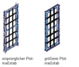 Um die Größe der Skizzensegmente und -erweiterungen zu beeinflussen, können Sie den geplanten Plotmaßstab festlegen. Ein größerer Maßstab vergrößert die Skizzensegmente und -erweiterungen in der endgültigen Skizze.