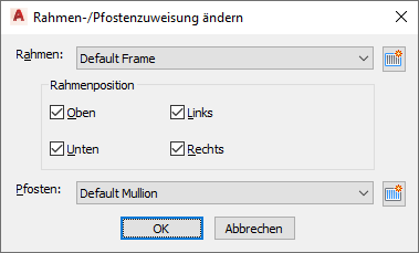 Das Arbeitsblatt Rahmen-/Pfostenzuweisung ändern wird angezeigt.