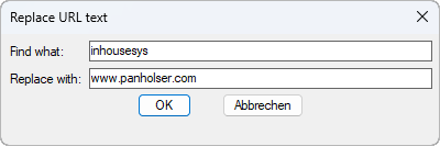 Sie können eine vollständige URL oder den Teil einer URL angeben. Beispielsweise können Sie alle .com-Hyperlink-Verweise durch .net ersetzen, oder Sie können in einem einzigen Vorgang eine interne URL durch eine URL für eine externe Website ersetzen.