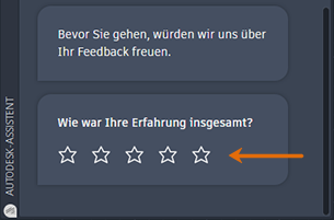 Zeigt die Palette Autodesk-Assistent an, in der Sie nach Hilfe aus verschiedenen Quellen suchen, den Support kontaktieren oder Feedback geben können. Suchergebnisse werden durch maschinelles Lernen unterstützt.