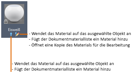 Bearbeiten Sie ein vorhandenes Material (aus der Autodesk-Materialbibliothek), oder beginnen Sie mit einem allgemeinen Material. Die Änderungen werden in der Voransicht des Materialmusters angezeigt. Sie können die Form des Bildes ändern, das in der Voransicht angezeigt wird.