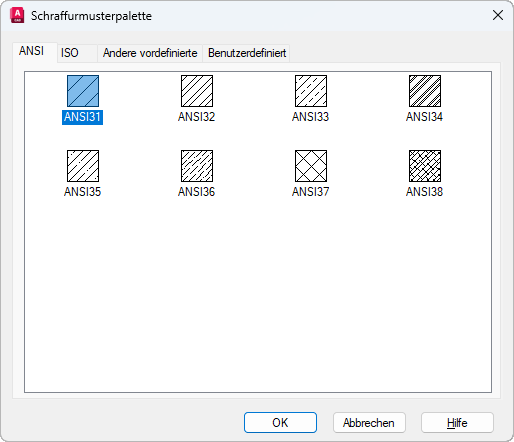 Zeigt alle ANSI-Muster im Lieferumfang des Programms an.