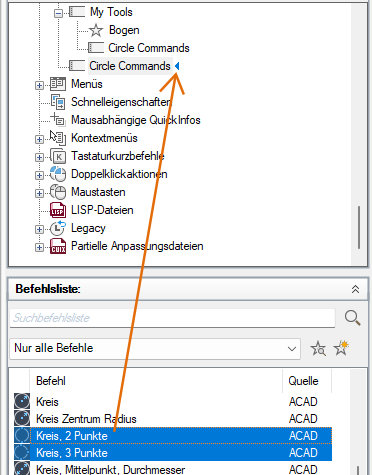 Im Werkzeugkasten wird ein neues Flyout erstellt. Außerdem wird basierend auf dem verwendeten Pulldown-Menü ein neuer Werkzeugkasten erstellt.
