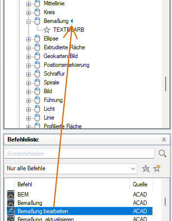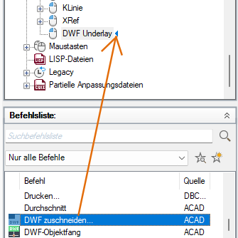 5. Wenn Sie den aktuell zugewiesenen Befehl für die Doppelklickaktion ersetzen möchten, ziehen Sie einen Befehl aus dem Bereich Befehlsliste auf die Doppelklickaktion im Bereich Anpassungen in <Dateiname>.