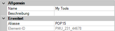 Im Feld Aliasse wird dem neuen Menü automatisch ein Aliasname zugeordnet. Er basiert auf der Anzahl der bereits geladenen Pulldown-Menüs. Beispiel: Die Aliaszuordnung POP12 bedeutet, dass bereits elf Pulldown-Menüs geladen wurden. Nehmen Sie die erforderlichen Änderungen am Aliasnamen vor.