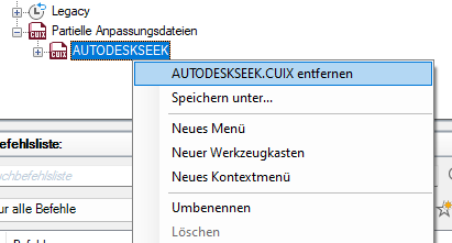 3. Klicken Sie mit der rechten Maustaste auf die partielle CUIx-Datei, die Sie entfernen möchten. Klicken Sie auf Entfernen <Anpassungsgruppenname>.