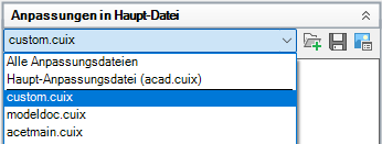 1. Wählen Sie auf der Registerkarte Anpassen im Bereich Anpassungen in <Dateiname> die gewünschte CUIx-Datei aus der Dropdown-Liste aus.