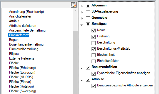 Steuern der Anzeige von benutzerdefinierten Eigenschaften und Attributen für Blockreferenzen