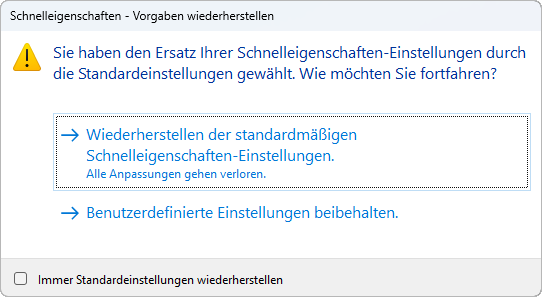 Wiederherstellen der Vorgabeeinstellungen für Schnelleigenschaften
