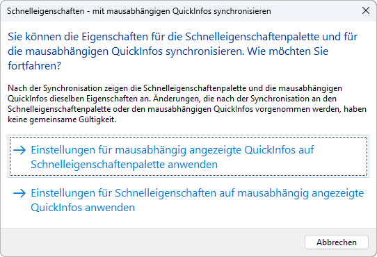 Synchronisieren der Schnelleigenschaften mit mausabhängigen QuickInfos