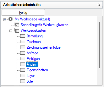 - Klicken Sie im Bereich Arbeitsbereichsinhalte auf das Pluszeichen (+) neben dem Knoten Werkzeugkästen, um ihn zu erweitern.