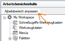- Klicken Sie auf der Registerkarte Anpassen im Bereich Anpassungen in <Dateiname> auf den Arbeitsbereich, der den zu ändernden Werkzeugkasten enthält.