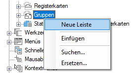 - Klicken Sie mit der rechten Maustaste auf den Knoten Gruppen. Klicken Sie auf Neue Leiste.