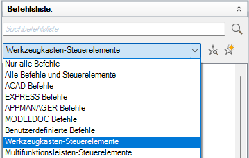 In der Befehlsliste wird nur eine Liste mit Multifunktionsleisten-Steuerelementen angezeigt.