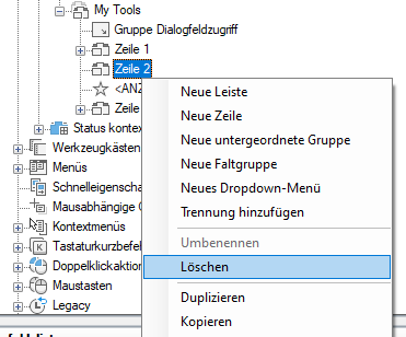 - Klicken Sie mit der rechten Maustaste auf die Zeile oder untergeordnete Gruppe, die Sie entfernen möchten. Klicken Sie auf Löschen.