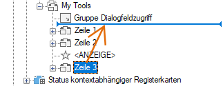 - Klicken Sie auf das Pluszeichen (+) neben der Multifunktionsleisten-Gruppe, für die Sie einen Befehl zum Knoten Gruppe Dialogfeldzugriff hinzufügen möchten.