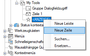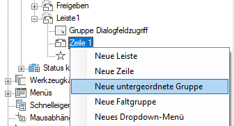 Unten in der Struktur der Multifunktionsleisten-Gruppen wird eine neue Gruppe (mit der Bezeichnung Gruppe1) angefügt.