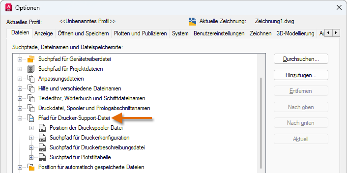 Die Plotterkonfigurationsdatei selbst wird nicht migriert; stattdessen wird eine Kopie der Datei im Unterordner namens Produktname PC3 Files erstellt. |