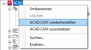 Anmerkung: Es können nur CUIx-Dateien, die sich im Ordner UserDataCache im Installationsverzeichnis des Programms befinden, zurückgesetzt werden.