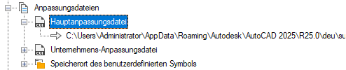 - Navigieren Sie im Explorer zu <Laufwerk>:\Benutzer\<Benutzerprofilname>\AppData\Roaming\Autodesk\<Produktname>\<Versionsnummer>\<Sprache>\support\<Anpassungsdateiname>.cuix.
