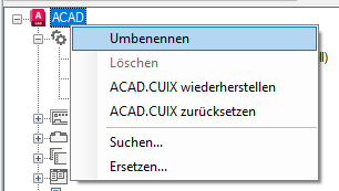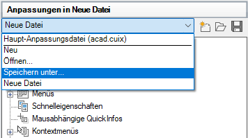 Anmerkung: Bei dieser Methode zur Erstellung einer neuen CUIx-Datei kann zusätzliche Arbeit anfallen, wenn nicht alle Befehle und Benutzeroberflächenelemente in der kopierten CUIx-Datei verwendet werden sollen.